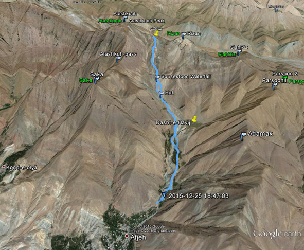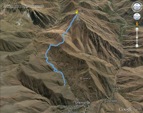زمان طی شده برای صعود= 7:00 ساعت (با احتساب نیم ساعت استراحت)