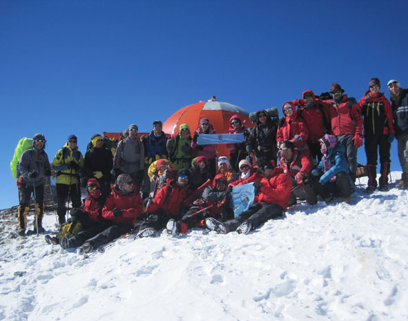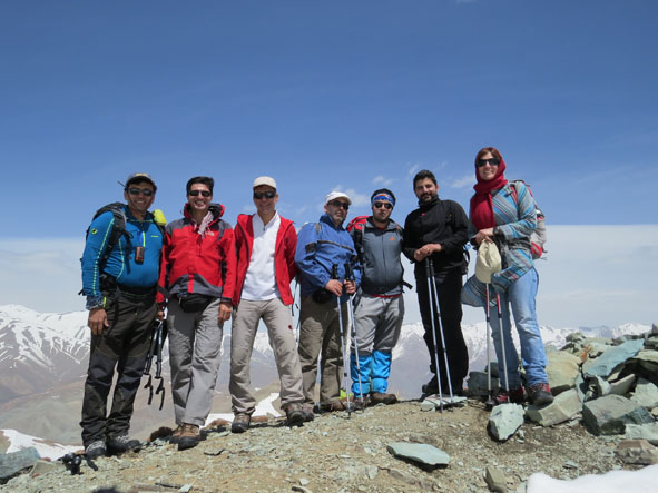 بر فراز قله: از راست: طیبه رنجبریان-رضازند- جواد سرخوش- حسین عباسی- رضا حبیبی- نیما اسماعیلی-مهران حیدرخانی