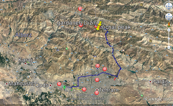 مسافت از تهران شهرک دانشگاه تا گردنه دیزین =88 کیلومتر