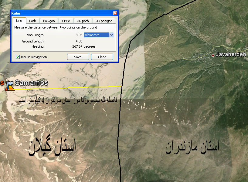 - همچنان که در شکل زیر دیده می شود قله سماموس تا مرزاستان مازندران 4 کیلومتر فاصله دارد.