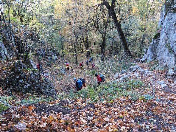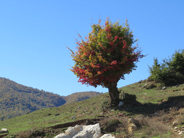شب چهار شنبه 30-07-1393 ساعت 23:30 ازپایانه بیهقی درمیدان آرژانتین تهران به سمت شهرگرگان در استان گلستان رهسپار شدیم. ساعت 6:00 به گرکان رسیدم وبا هماهنگی قبلی با یک مینی بوس به سمت شهر رامیان وازآنجا به روستای پا قلعه راهی شدیم.ساعت 09:00 به روستای پاقلعه رسیدیم با هماهنگی انجام شده وسایل اضافی به یک کلبه محلی –محل شب مانی- انتقال یافت و پس ازآماده کردن کوله ها ساعت 09:30 با جلو داری آقا عباس – راهنمای محلی- به سمت قلعه ماران آغاز شد.پس از نیم ساعت به چشمه ای رسیدیم که البته در این فصل آب بسیار کمی داشت.با ادامه مسیروارد جنگل شدیم.هوای پاییزی زیبایی بسیار خاصی به مسیر داده بود.برگ درختان رنگهای گوناگونی (زرد-نارنجی-قرمز-سبز )به خود گرفته بودند.هوا بسیار مطبوع بود.در ابتدای مسیر درختان کندوس(ازگیل وحشی) و ولیک (زالزالک وحشی) وجود داشت.هنوزازگیل ها بطور کامل نرسیده بودند.مقداری ازگیل خوردیم و به راهمان از میان درختان ادامه دادیم.هر چه از زیبایی مسیر بگویم کم است باید رفت و دید.بهشتی بر روی زمین.پاییز جنگل های شمال ایران دیدنی است.من که از زیبایی نادر مسیرمسحور شده بودم و بالغ بر 400 قطعه عکس گرفتم که بعدا با نگاه کردن به آنها این خاطرات را زنده کنم.در میانه راه به محلی رسیدم که به آن "شاهین دژ" می گویند .تخته سنگ بزرگی است که برای با لا رفتن از آن کمی دست به سنگ شدیم. از فراز آن منظره بسیار خوبی رو به پایین دیده می شود.مسیر را ادامه دادیم تا به دهانه کاسه قلعه رسیدم وبه سمت "آرام راهب" ( آرام= گوسفند سرا) رهسپار شدیم.ساعت 13:30 به محل "آرام راهب" رسیدیم.در آنجا چشمه گوارایی وجود دارد.آبی خوردیم و آقا راهب (گله داری که 40-50 سال است که از این گوسفند سرا استفاده می کند) ما را به آلا چیق خود دعوت کرد.با خوردن ناهار وچای درست شده بر روی هیزم ساعت 14:30 به سمت پایین حرکت کردیم.همان مسیری راکه صعود کرده بودیم ، فرود آمدیم.و باز از میان بهشت گذشتیم.با تغییر نورخورشید،انعکاس نوربرروی برگ درختان جلوه ویژه پدید آورده بود.ساعت17:30 با گرگ و میش شدن هوا به روستا رسیدیم و این چنین برنامه ای پاییزی و شگفت انگیز به پایان رسید.