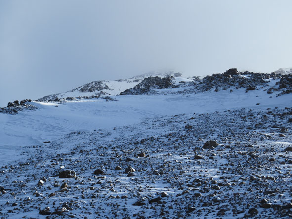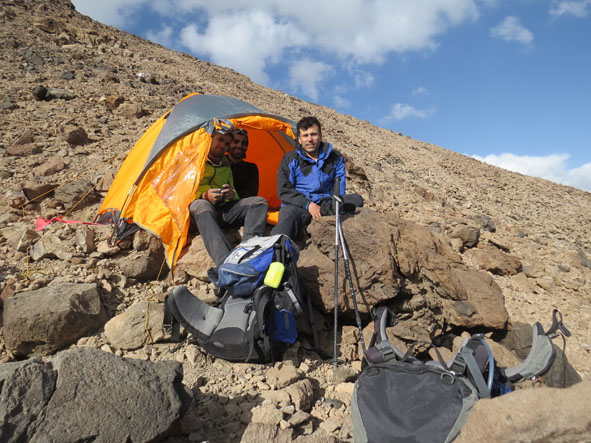 روزچهارشنبه 13-03-1394 ساعت 5:00 صبح ازتهران به سمت پلور در شمال شرق تهران رهسپار شدیم. بعد از عبور از شهرهای جاجرود و رودهن نرسیده به پلور ترافیک بود ساعت 8:30 به پلور رسیدیم وبرای خرید مایحتاج توقفی کوتاه داشتیم ساعت 9:00 به قرارگاه فدراسیون رسیدیم وبعد از پارک ماشین وآماده کردن کوله ها با ماشین پاترول – به رانندگی آقا سینا - به سمت بارگاه اول(مسجد صاحب الزمان-) راهی شدیم.در ابتدای جاده جیپ رو گلهای شقایق زیبایی خاصی به مسیر داده بود. با رسیدن به بارگاه سوم وآماده شدن تیم ساعت 10:00 رو به غرب به سمت یال لومرحرکت کردیم.بعد ازنیم ساعت به ابتدای یال لومر رسیدیم ورو به شمال سوار بر یال شدیم .با توجه به سنگینی کوله ها با گامهای آهسته به حرکت خود ادامه دادیم.ازکنار سنگچین های بزرگی -به بلندای یک نفر- عبورکردیم. این سنگچین ها نشانه یال لومر است.هر 5/1 ساعت قدری استراحت می کردیم وبا خوردن نوشیدنی وتنقلات تجدید قوا می کردیم.ساعت 14:00 در ارتفاع 4100 متری برای خوردن ناهار نیم ساعتی توقف کردیم وبا ادامه مسیرساعت 16:00 در ارتفاع 4520 متری محل نسبتا مناسبی برای چادر زدن پیدا کردیم.چهل 40 دقیقه برای هموار کردن محل چادر وسنگچین کردن آن وقت صرف شد وبا برپا کردن چادرومحکم کردن طنابهای حمایت آن ساعت 17:00 به داخل چادر رفتیم.زیبایی منطقه ونگریستن برقله دماوند و یال هایش، خستگی مسیررا ازتنمان بیرون می کرد.درنهایت با درست کردن سوپ وخوردن آن ساعت 20:00 به داخل کیسه خواب ها رفتیم و سریع به خواب رفیتم.در نیمه های شب بر اثر باد های سنگین و بارش برف ،تیرکهای چادر درحال از هم گستن بود.شب سردی را سپری کردیم.صبح ساعت 5:00 بیدار شدیم وبا آب کردن برف چای نباتی درست کردیم وبا خوردن صبحانه و آماده شدن تیم در نهایت ساعت 7:00 صبح برنامه صعود آغاز شد.حدود 7-8 سانی متر برف روی زمین نشسته بود.بعد ازیک ساعت صعود،یکی ازاعضای تیم به سمت چادر بازگشت ودو نفر دیگر به صعود ادامه دادند.در ابتدای مسیرقبل ازطلوع آفتاب باد سردی می وزید.بعد از طلوع آفتاب هوا کمی گرم شد وبه طور متناوب هوا ابری وآفتابی می شد.گاهی برف می بارید وگاهی هوا صاف می شد وگاهی باد شدید می وزید.بنابراین ما مجبور بودیم مدام لباس اضافه و کم کنیم.خلاصه هوای بهاری دماوند،را این چنین ندیده بودم..در ارتفاع 5100 متری سنگ بزرگی قرار دارد که شبیه یک میمون نشسته است.من آن را " سنگ میمون" نامگذاری کردم. بعد ازعبوراز آن به یک تک سنگ بزرگ دیگری می رسیم که ده متری ارتفاع دارد . در ارتفاع 5450 متری آرام آرام به سمت یال جنوبی تراوس کردیم ودر ارتفاع 5500 به یال جنوبی پیوستیم.دود گوگرد بسیار شدید بود وتنفس را برای کوهنوردان سخت کرده بود.با ادامه مسیردر نهایت ساعت 13:00 بر فراز قله بودیم.با گرفتن عکس و فیلم وخوردن نوشیدنی ساعت 13:30 از یخچال بین یال جنوبی ویال لومرازروی برف ها به سمت پایین حرکت کردیم.سرعت فرودمان خیلی خوب بود ودر نهایت ساعت 15:00 به محل چادر رسیدیم.با خوردن یک نسکافه داغ و جمع کردن چادر وآماده کردن کوله ها ساعت 16:00 به سمت پایین راه افتادیم وازهمان مسیربالا آمده پایین رفتیم در ساعت 19:00 با رسیدن به بارگاه اول برنامه ای بسیار زیبا به پایان رسید.