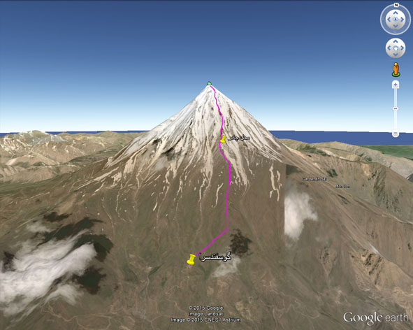 صبح چهارشنبه 17-04-1394 ساعت 5:15 صبح ازتهران به سمت پلور در شرق تهران رهسپار شدم. بعد از عبور از شهرهای "جاجرود" و" رودهن" ساعت 7:00 به شهر پلوررسیدم در رستوران آدم وحوا صبحانه خوردم وبعد به قرارگاه فدراسیون در پلور رفتم .خوشبختانه یک تیم پنج نفره قصد داشتند که مسیرغربی را صعود کنند بنابراین من هم با آنها همراه شدم.بعد از پارک ماشین ساعت 7:40 با یک جیپ – به رانندگی آقای سینا- به سمت جاده سد لار(مسیرغربی ) راهی شدیم.هزینه کرایه جیپ 150000تومان شد.مسیر قدیمی غربی را تغییر داده اند ومی بایست ازکنار محیط بانی عبورکنیم.پس ازعبور ازگوسفند سرای چال چال به سمت چاک اسکندررفتیم نرسیده به پارکینگ غربی من پیاده شدم.بعد ازآماده کردن کوله ساعت 9:00 رو به شرق روانه شدم .درابتدای مسیر؛یک دره در سمت راست قرارداشت.سپس به یک دشت رسیدم بعد ازاین دشت به یال اصلی سروزان رسیدم.در سمت چپ یال غربی قرارداشت وپناهگاه سیمرغ به خوبی دیده می شد.با ادامه مسیرساعت 14:00 برای صرف ناهارنیم ساعتی را استراحت کردم.بعد ازصرف ناهاردوباره حرکت کردم ودرنهایت ساعت 16:00 در ارتفاع 4800 متری جای نسبتا مناسبی برای چادرپیدا کردم.نیم ساعتی را برای هموارکردن محل چادرصرف کردم.با برپا کردن چادربه داخل رفته وبا خوردن تنقلات با توجه به احساس خستگی زیاد،به داخل کیسه خواب رفتم.ساعت 23:30 بیدار شدم.اما تمایلی به خوردن شام نداشتم.دوباره به خواب رفتم وساعت 4:30 بیدارشده وبا خوردن صبحانه وجمع کردن چادرساعت 6:00 برای صعود قله راهی شدم.با توجه به غربی بودن مسیرهواسرد بود ومجبوربه استفاده ازدستکش پر شدم.ازاینجا به بعد مسیرتوام بود با شن اسکی وبا کوله سنگین،صعود دوچندان مشکل شده بود .هر یک ساعت، 5 دقیقه استراحت میکردم..قدم هایم نزدیک قله آهسته شده بود. درنهایت ساعت 10:15 به قله رسیدم.درسمت غربی عکسی به یادگار گرفتم وبه سمت جنوبی رفتم.با توجه به اینکه باد ازشرق به غرب میوزید تمام دود گوگرد به سمت جنوبی بود به محل تابلو جنوبی رفتم اما دود گوگرد به قدری بود که احساس خفگی کردم ونتوانستم آنجا بایستم.کمی به سمت کاسه قله رفتم وآنجا برای هم هوایی دوساعت استراحت کردم.ساعت 12:00 ازسمت جنوبی به سمت پایین روانه شدم.ازشن اسکی کافردره استفاده کردم تا به زانوهایم کمترفشار آید.ساعت 13:30 به بارگاه سوم رسیدم.نیم ساعتی را استراحت کرده وبا خوردن ناهارساعت 14:00 به سمت پایین روانه شدم.هوا گرم شده بود وگرمای هوا فرود را مشکل کرده بود.در نهایت ساعت 15:30 به گوسفندسرا رسیدم.بدین ترتیب برنامه ای سخت ولی شیرین به پایان رسید.
